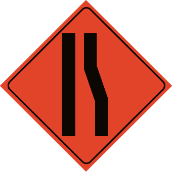 NMC RUR11 Lanes Merging Left Sign – 48 in. Diamond Nylon Reflective Roll Up Traffic Safety Sign with Graphic, Black Text on Orange Base