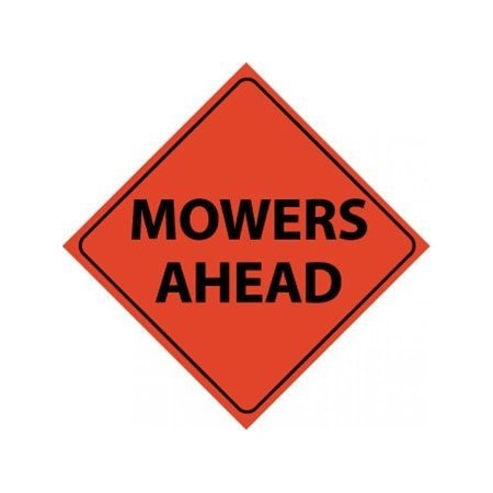 NMC RUR5 MOWERS Ahead Sign – 48 in. Diamond Reflective Roll Up Traffic Safety Sign with Black Text on Orange Base