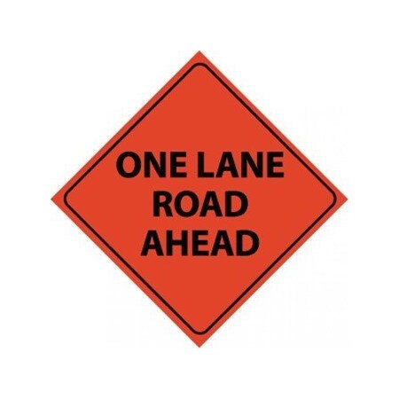 NMC RUR6 ONE Lane Road Ahead Sign – 48 in. Diamond Reflective Roll Up Traffic Safety Sign with Black Text on Orange Base