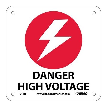 NMC S11R Electrical Sign, Legend "DANGER HIGH VOLTAGE" with Graphic, 7" Length x 7" Height, Rigid Plastic, Black/Red on White
