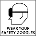 NMC S13P PPE Sign, Legend "WEAR YOUR SAFETY GOGGLES" with Graphic, 7" Length x 7" Height, Pressure Sensitive Vinyl, Black on White