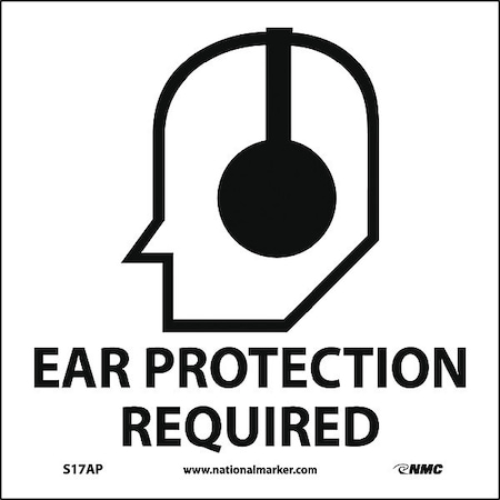 NMC S17AP PPE Sign, Legend "EAR PROTECTION REQUIRED" with Graphic, 4" Length x 4" Height, Pressure Sensitive Vinyl, Black on White (Pack of 5)
