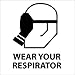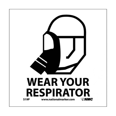 NMC S19P Graphic See Sign, Legend "WEAR YOUR RESPIRATOR", 7" Length x 7" Height, Pressure Sensitive Vinyl, Black on White