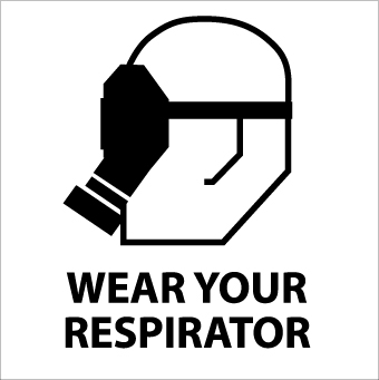 - Visibility: the legend “WEAR YOUR RESPIRATOR” is printed in bold and legible text for better visibility even from a distance. The head w/half face respirator graphic makes the sign easily understandable