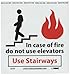 - Header "Use stairways" legend "In case of fire do not use elevators" with graphic