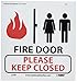 - Header "FIRE DOOR" and legend "PLEASE KEEP CLOSED" with graphic