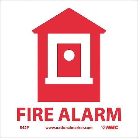 NMC S42P Graphic See Sign, Legend "FIRE ALARM", 7" Length x 7" Height, Pressure Sensitive Vinyl, Red on White