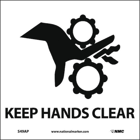NMC S49AP Machine Sign and Label, Legend "KEEP HANDS CLEAR" with Graphic, 4" Length x 4" Height, Pressure Sensitive Vinyl, Black on White (Pack of 5)