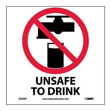 NMC S55AP Hazardous Materials Sign, Legend "UNSAFE TO DRINK", 4" Length x 4" Height, Pressure Sensitive Vinyl, Black/Red on White (Pack of 5)