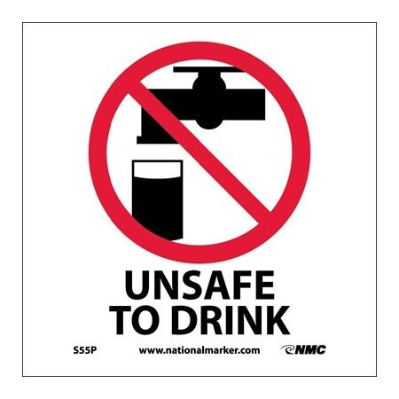 NMC S55P Hazardous Materials Sign, Legend "UNSAFE TO DRINK" with Graphic, 7" Length x 7" Height, Pressure Sensitive Vinyl, Black/Red on White