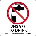 NMC S55R Hazardous Materials Sign, Legend "UNSAFE TO DRINK" with Graphic, 7" Length x 7" Height, Rigid Plastic, Black/Red on White