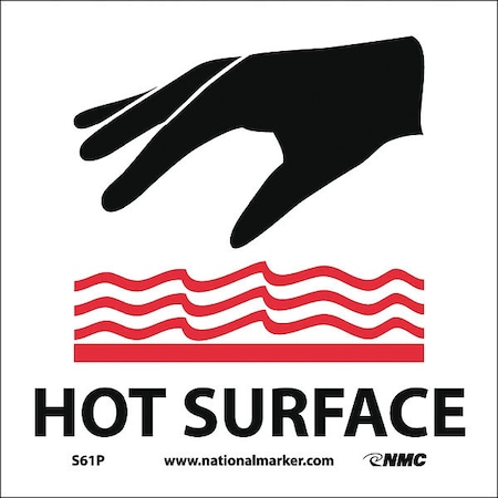 NMC S61P Graphic See Sign, Legend "HOT SURFACE", 7" Length x 7" Height, Pressure Sensitive Vinyl, Black/Red on White