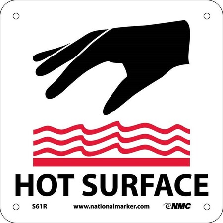 NMC S61R Graphic See Sign, Legend "HOT SURFACE", 7" Length x 7" Height, Rigid Plastic, Black/Red on White
