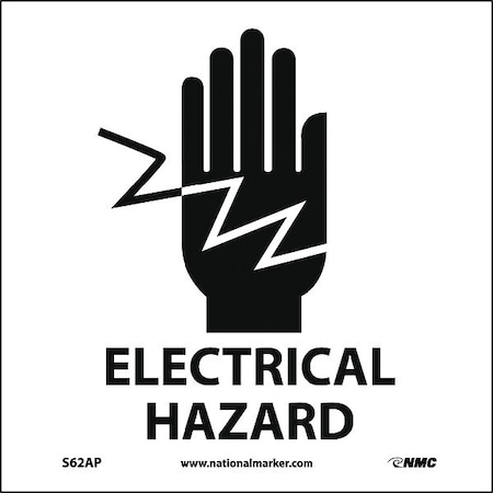 NMC S62AP Electrical Sign, Legend "ELECTRICAL HAZARD" with Graphic, 4" Length x 4" Height, Pressure Sensitive Vinyl, Black on White (Pack of 5)