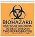 | Feature | Header "BIOHAZARD" and legend "NO FOOD OR DRINK TO BE STORED IN THIS REFRIGERATOR" with graphic |