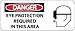 | Feature | Header "DANGER" and legend "EYE PROTECTION REQUIRED IN THIS AREA" with Graphic |