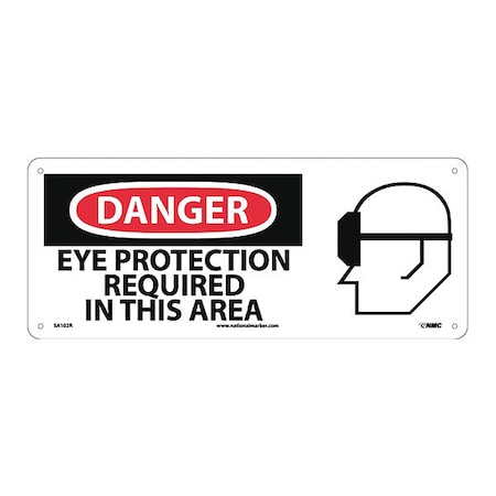 NMC SA102R DANGER – EYE PROTECTION REQUIRED IN THIS AREA Sign – 17 in. x 7 in. Rigid Plastic Danger Sign with Graphic, White/Black Text on Red/White Base