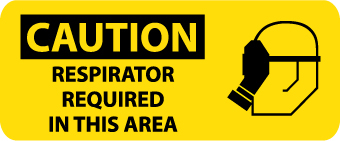 | Feature | Header "CAUTION" and legend "RESPIRATOR REQUIRED IN THIS AREA" with graphic |