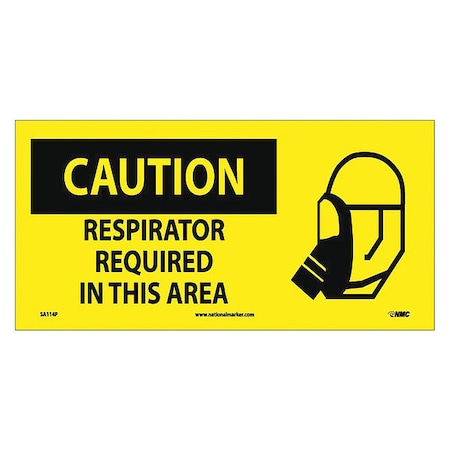 NMC SA114P 7" x 17" Graphic OSHA Safety Sign w/Legend:Caution, Respirator Required in This Area, PS Vinyl, Pack of 50 pcs