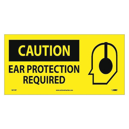 NMC SA123P 7" x 17" Graphic OSHA Safety Sign w/Legend:Caution, Ear Protection Required, PS Vinyl, Pack of 50 pcs