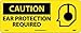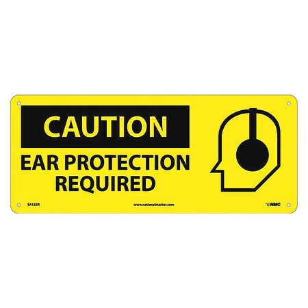 NMC SA123R Graphic OSHA Safety Sign, Legend "CAUTION - EAR PROTECTION REQUIRED" with Graphic, 17" Length x 7" Height, Rigid Plastic, Black on Yellow