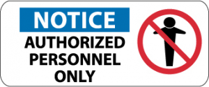 NMC SA135R NOTICE - AUTHORISED PERSONNEL ONLY Sign - 17in. Rigid Plastic Admittance Sign with Graphic, BlackWhite Text on WhiteBlue Base
