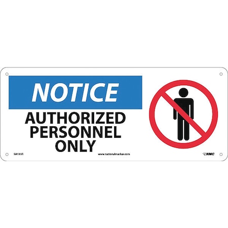 NMC SA135R 7" x 17" Graphic OSHA Safety Sign w/Legend:Notice, Authorized Personnel Only, Rigid Plastic, Pack of 20 pcs