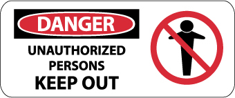| Feature | Header "DANGER" and legend "UNAUTHORISED PERSONS KEEP OUT" with graphic |