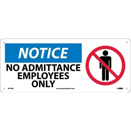NMC SA139P Graphic OSHA Safety Sign, Legend "NOTICE - NO ADMITTANCE EMPLOYEES ONLY" with Graphic, 17" Length x 7" Height, Pressure Sensitive Vinyl, Blue/Black/Red on White