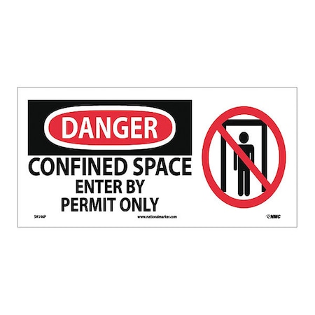 NMC SA146P Graphic OSHA Safety Sign, Legend "DANGER - CONFIINED SPACE ENTER BY PERMIT ONLY" with Graphic, 17" Length x 7" Height, Pressure Sensitive Vinyl, Black/Red on White
