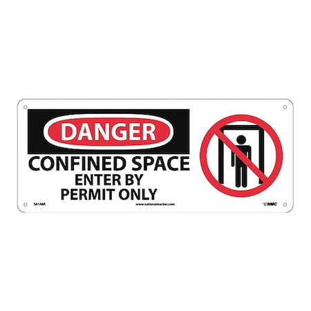 NMC SA146R Graphic OSHA Safety Sign, Legend "DANGER - CONFIINED SPACE ENTER BY PERMIT ONLY" with Graphic, 17" Length x 7" Height, Rigid Plastic, Black/Red on White