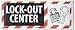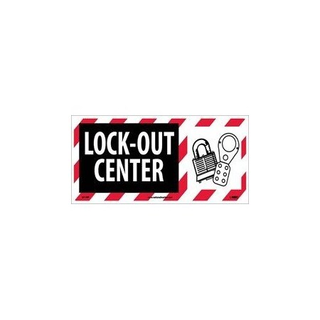 NMC SA148P Lockout-Tagout Sign, Legend "Lock Out Center" with Graphic, 17" Length x 7" Height, Pressure Sensitive Vinyl, White/Red on Black
