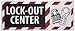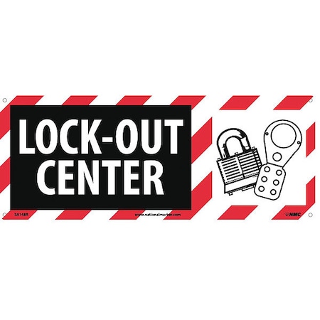 NMC SA148R Lockout-Tagout Sign, Legend "Lock Out Center" with Graphic, 17" Length x 7" Height, Rigid Plastic, White/Red on Black