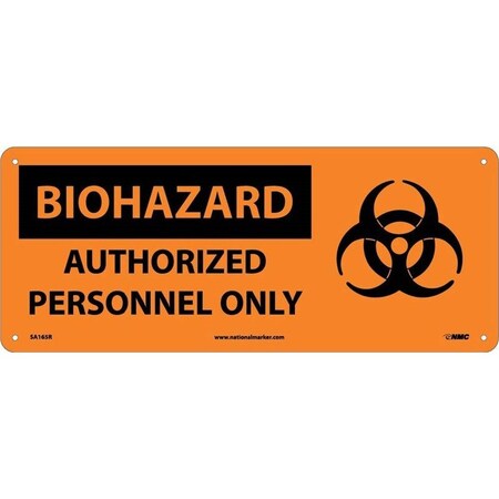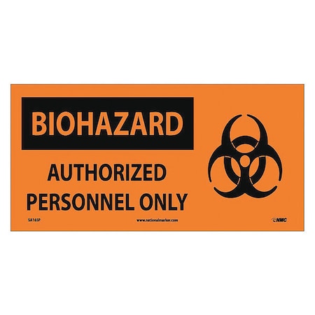 NMC SA165P 7" x 17" Graphic OSHA Safety Sign w/Legend:Biohazard, Authorized Personnel Only, PS Vinyl, Pack of 50 pcs