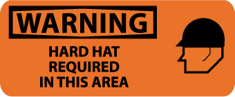 | Feature | Header "WARNING" and legend "HARD HAT REQUIRED IN THIS AREA" with graphic |