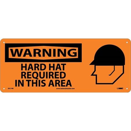 NMC SA174P 7" x 17" Graphic OSHA Safety Sign w/Legend:Warning, Hard Hat Required in This Area, PS Vinyl, Pack of 50 pcs