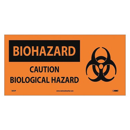 NMC SA52P 7" x 17" Graphic OSHA Safety Sign w/Legend:Biohazard, Caution Biological Hazard, PS Vinyl, Pack of 50 pcs