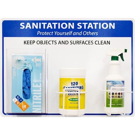- Place these highly visible signs & dispensers in high traffic areas and entrances to help create and maintain a healthy and safe workplace. SANITIZER, WIPES, DISINFECTANTS, MASKS & GLOVES ARE NOT INCLUDED, AND SHOWN FOR REFERENCE ONLY.