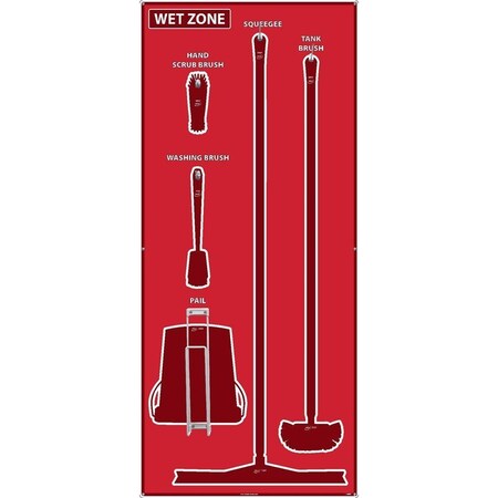 NMC SB110ACP 5S Wet Zone Janitorial Shadow Board, 68"x30", Red/Red, Aluminum Composite Panel (Tools Sold Separately)