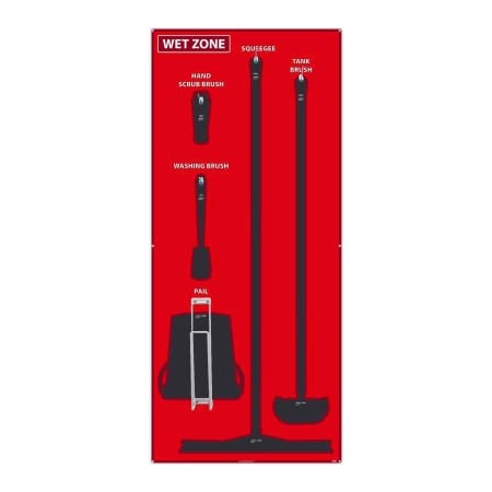 NMC SB112AL 5S Wet Zone Janitorial Shadow Board, 68"x30", Red/Black, Aluminum Sign (Tools Sold Separately)