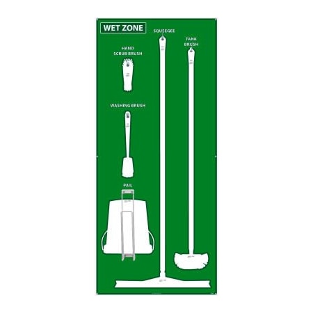 NMC SB117AL 5S Wet Zone Janitorial Shadow Board, 68"x30", Green/White, Aluminum Sign (Tools Sold Separately)