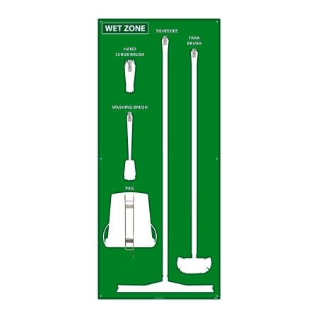 NMC SB117FG 5S Wet Zone Janitorial Shadow Board, 68"x30", Green/White, Pro Series Acrylic Sign (Tools Sold Separately)