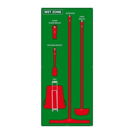NMC SB118ACP 5S Wet Zone Janitorial Shadow Board, 68"x30", Green/Red, Aluminum>+<Composite Panel (Tools Sold Separately)