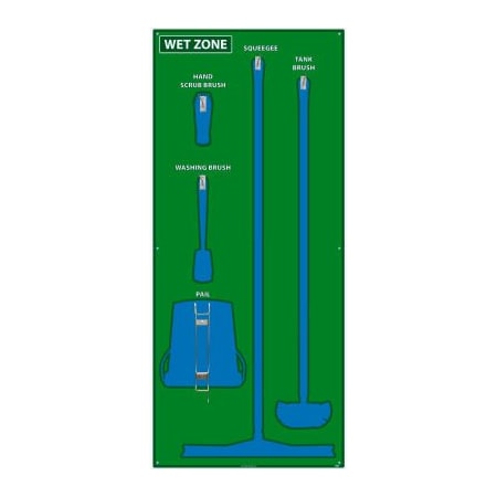 NMC SB119FG 5S Wet Zone Janitorial Shadow Board, 68"x30", Green/Blue, Pro Series Acrylic Sign (Tools Sold Separately)