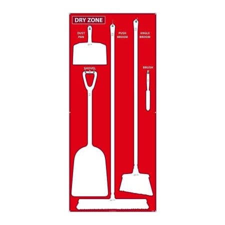 NMC SB125ACP 5S Dry Zone Janitorial Shadow Board, 68"x30", Red/White, Aluminum Composite Panel (Tools Sold Separately)