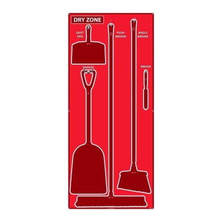 NMC SB126ACP 5S Dry Zone Janitorial Shadow Board, 68"x30", Red/Red, Aluminum Composite Panel (Tools Sold Separately)