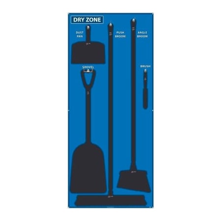 NMC SB132AL 5S Dry Zone Janitorial Shadow Board, 68"x30", Blue/Black, Aluminum Sign (Tools Sold Separately)