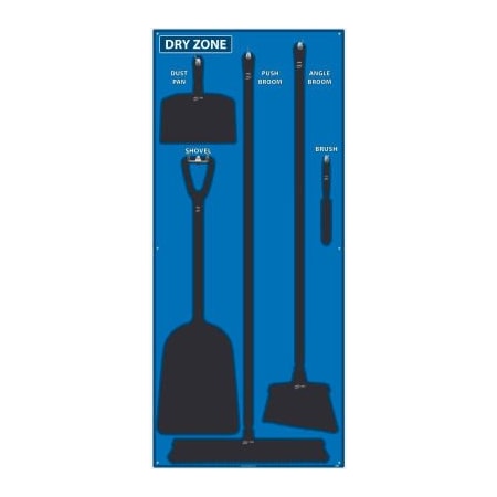 NMC SB132FG 5S Dry Zone Janitorial Shadow Board, 68"x30", Blue/Black, Pro Series Acrylic Sign (Tools Sold Separately)