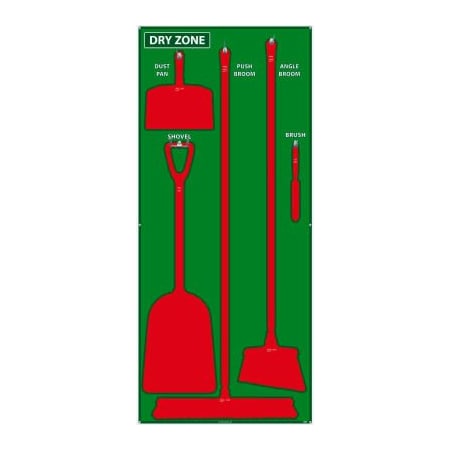 NMC SB134AL 5S Dry Zone Janitorial Shadow Board, 68"x30", Green/Red, Aluminum Sign (Tools Sold Separately)