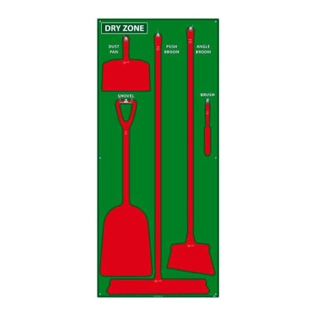 NMC SB134FG 5S Dry Zone Janitorial Shadow Board, 68"x30", Green/Red, Pro Series Acrylic Sign (Tools Sold Separately)